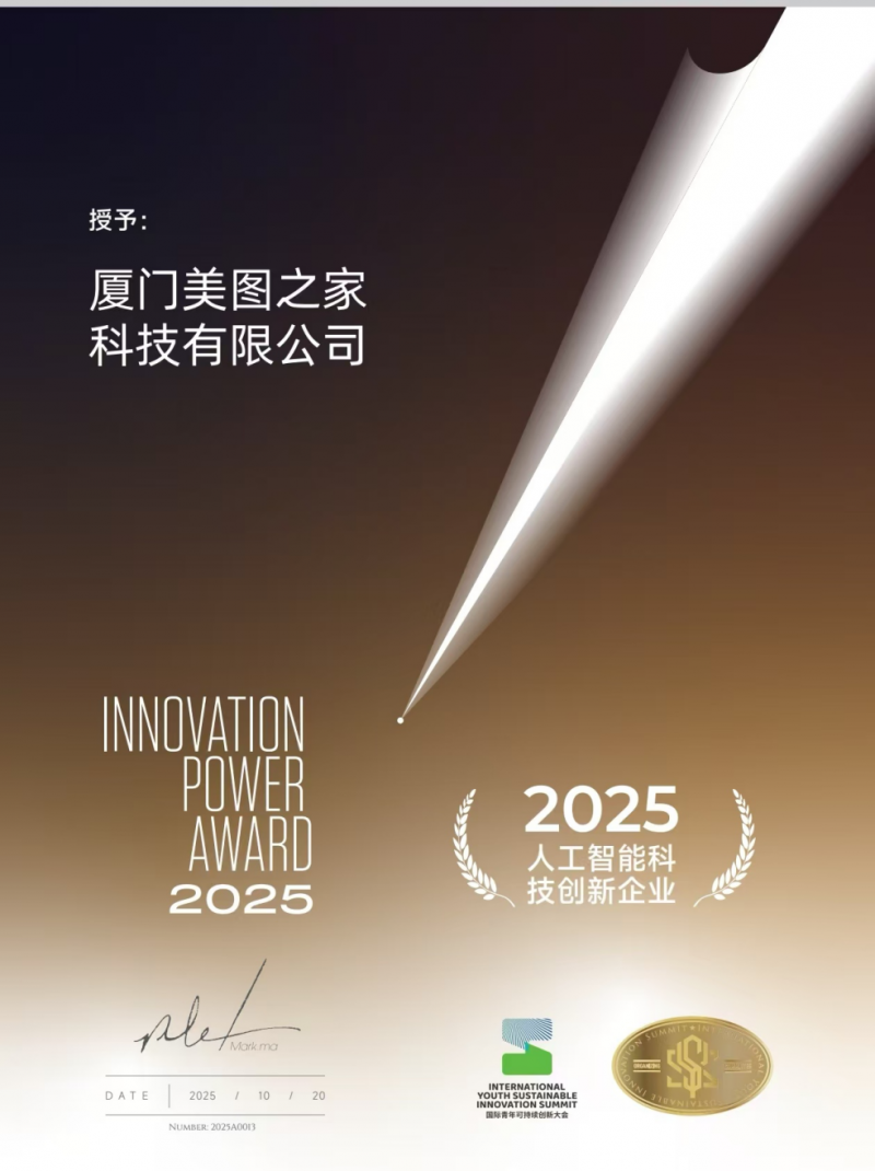 此次荣获2025国际青年创新大会“人工智能科技创新企业”奖,是对美图公过往探索的肯定,更是对其未来发展的期许。在AI技术浪潮奔涌向前的时代,美图公司正以“美”为核,以“智”为擎涨盈配,在全球舞台上书写中国AI科技企业创新与突破的新篇章。