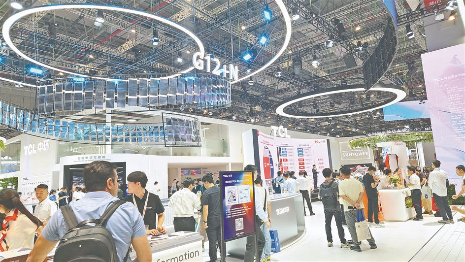 在天合光能展台,记者注意到,公司展出了最新发布的智慧能源解决方案场景图,业务涵盖分布式电站、集中式电站、并延伸至绿色交通、绿色算力、零碳园区等新场景解决方案。